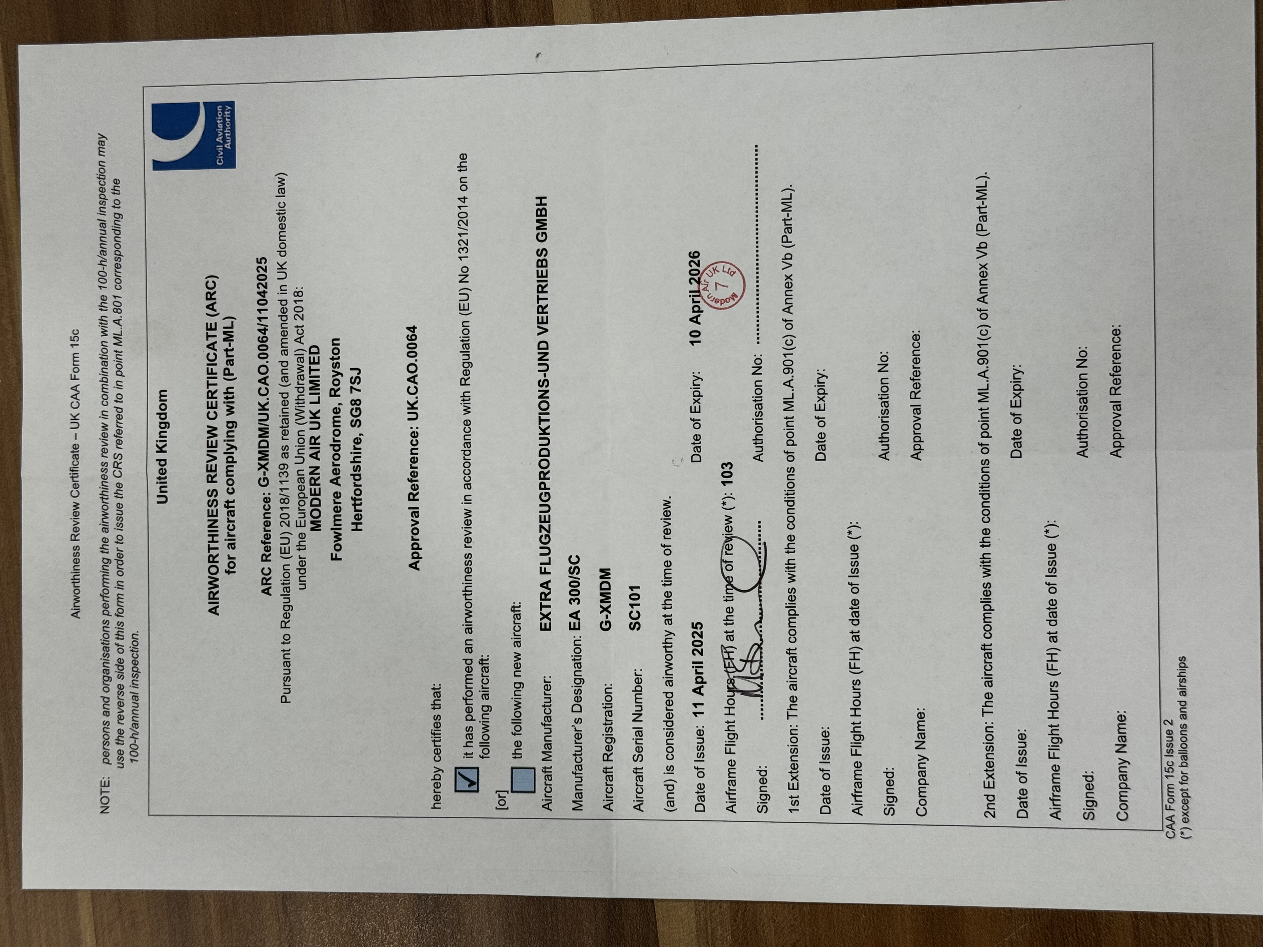 | Lilham Aviation OCM Iss 1.pdf | Operators Control Manual — Issue 1 |